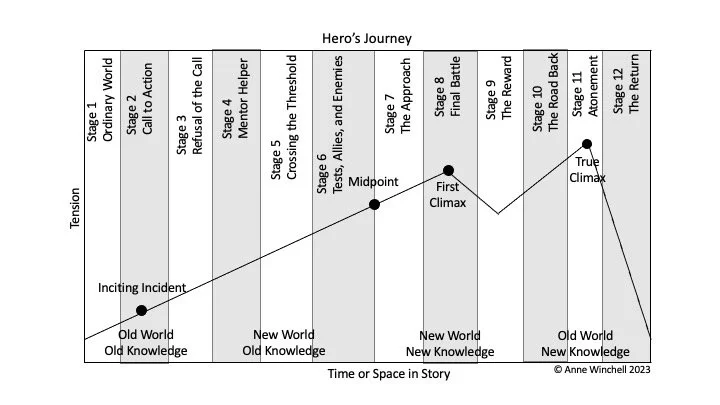 Copyright ©️ 2023 Anne Winchell. Original ideas belong to the respective authors. Generic concepts such as dramatic structure and the types of structure are copyrighted under Creative Commons with attribution, and any derivatives must also be Creative Commons. However, all language or exact phrasing are individually copyrighted by the respective authors. Contact them for information on usage and questions if uncertain what falls under Creative Commons. We’re almost always happy to give permission. Please contact the authors through this website’s contact page.